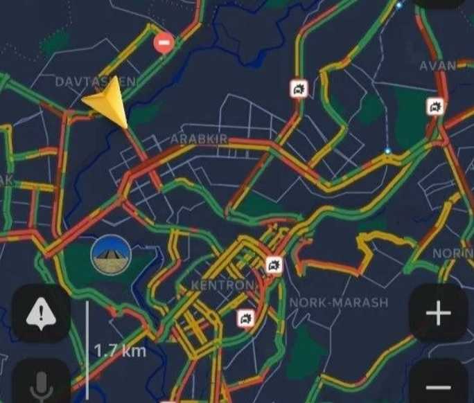 Երևանի մի շարք փողոցներում, տեղական ժամանակով, ժամը 9:00-ի դրությամբ, 9 բալանոց (երթևեկության արագությունը՝ մինչև 3 կմ/ժամ) խցանումներ են՝ ըստ Yandex Navigator-ի։