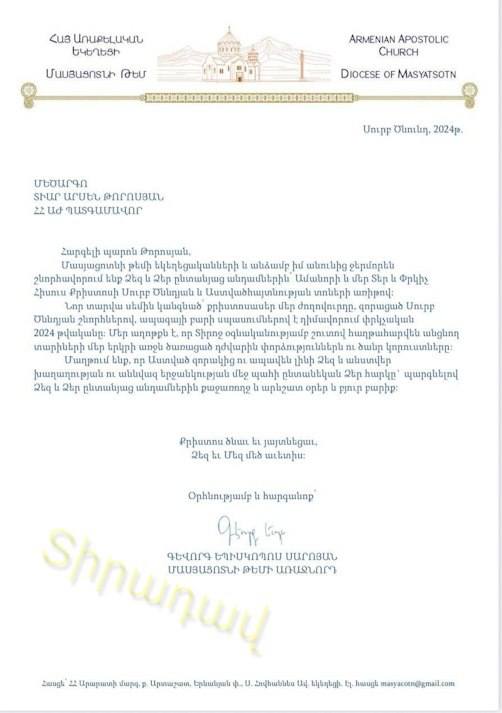 Հրապարակվել է’ փաստաթուղթ, որտեղ հստակ երևում է 2023-2024 թվից ՔՊ-ական նախարար աթեիստ Արսեն Թորոսյանը կոնտակտ մեջ է եղել Մասյացոտն թեմի առաջնորդ Գեւորգ սրբազանի հետ