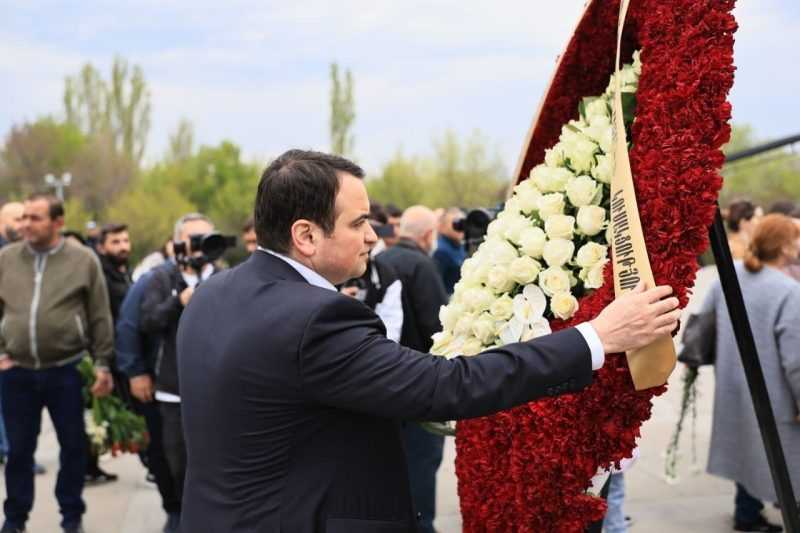 Նարեկ Կարապետյանը և կուսակցության անդամները ծաղկեպսակ են դրել և ծաղիկներ խոնարհել՝ ի հիշատակ անմեղ նահատակների։