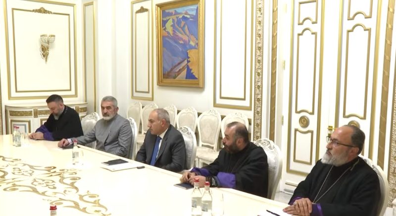 Группа архиепископов и епископов Армянской Апостольской церкви пришла к премьеру Николу Пашиняну, кадры встречи выложил премьер в соцсетях.