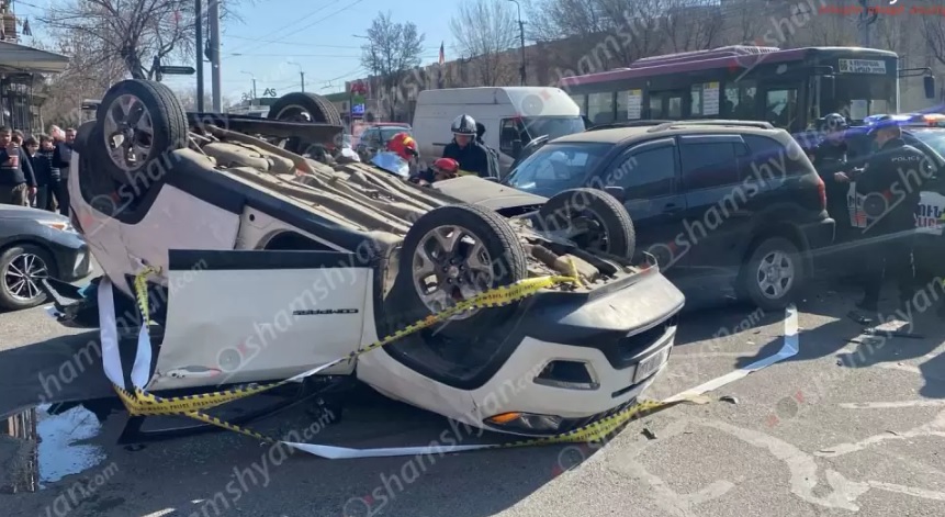 Բախման հետևանքով «Jeep Compass»-ը գլխիվայր շրջվել է և դեպքի վայր են ժամանել նաև փրկարարները։