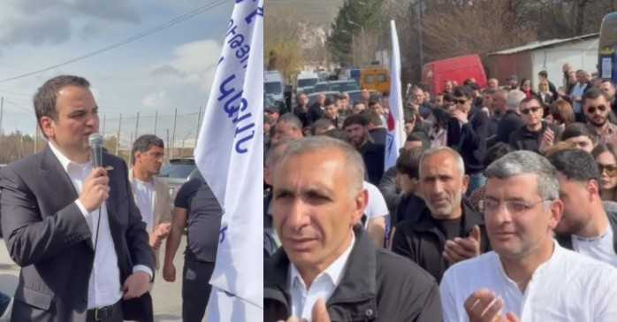 Հրապարակված կադրերում երևում է, որ Սամվել Կարապետյանի գլխավորած ուժի ներկայացուցիչները գրասենյակի բացունից հետո բազմամարդ երթով քայլեն են Չարենցավանում։
